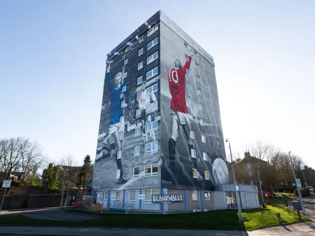Two stunning murals of Denis Law have now been completed in Printfield, Woodside – the area in Aberdeen where the Scottish footballing legend was born and raised – and marks a milestone in planned legacy projects in Aberdeen.